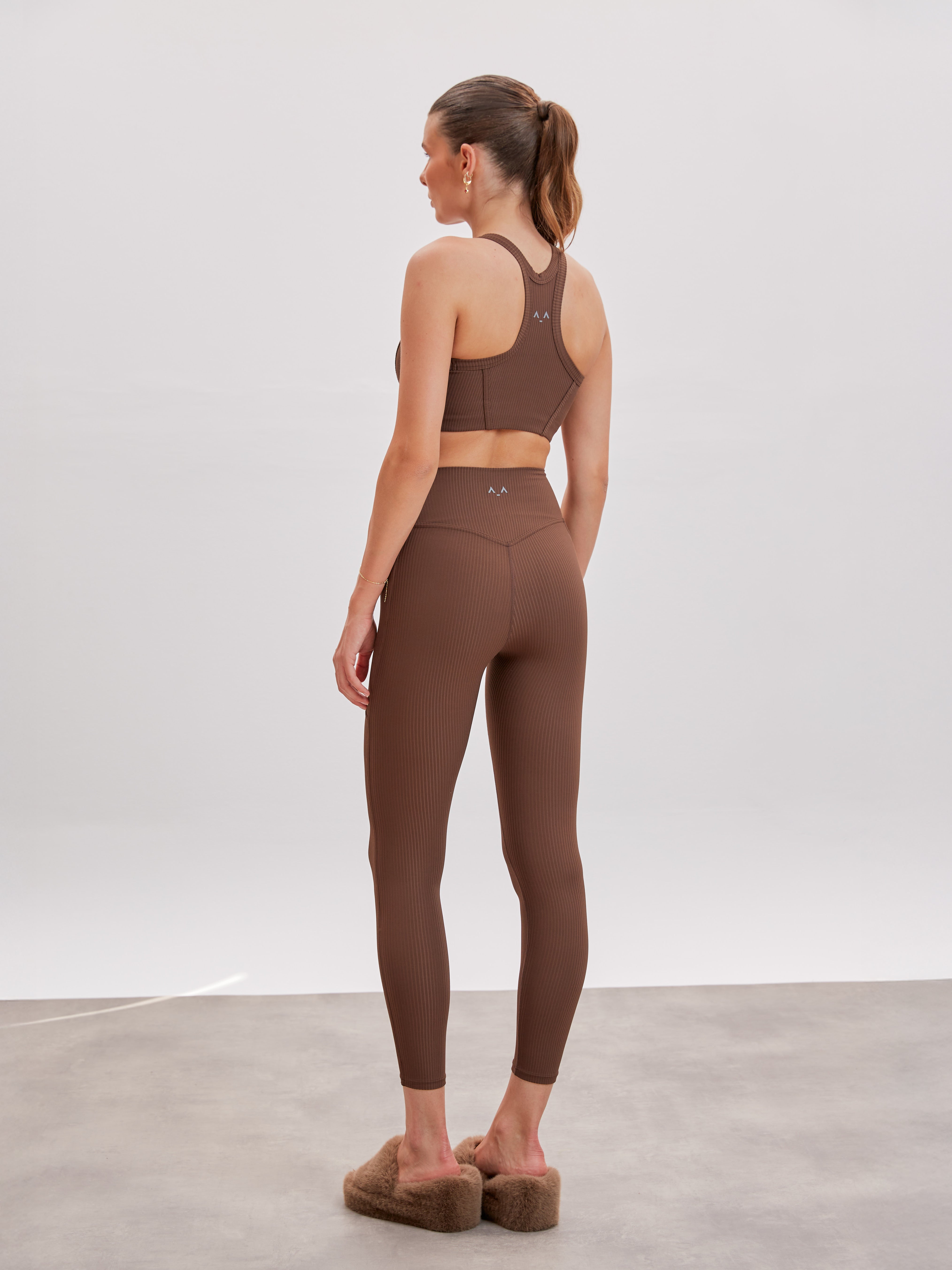 Dieses figurbetonte Racerback-Crop-Top aus geripptem, elastischem Funktionsstrick schmiegt sich wie eine zweite Haut an und bietet Halt, ohne einzuengen. Ideal für Pilates, Workouts oder Spaziergänge – und dank des cleanen Designs auch perfekt zum Layern unter Blazer oder Jacke für einen modernen Streetstyle.